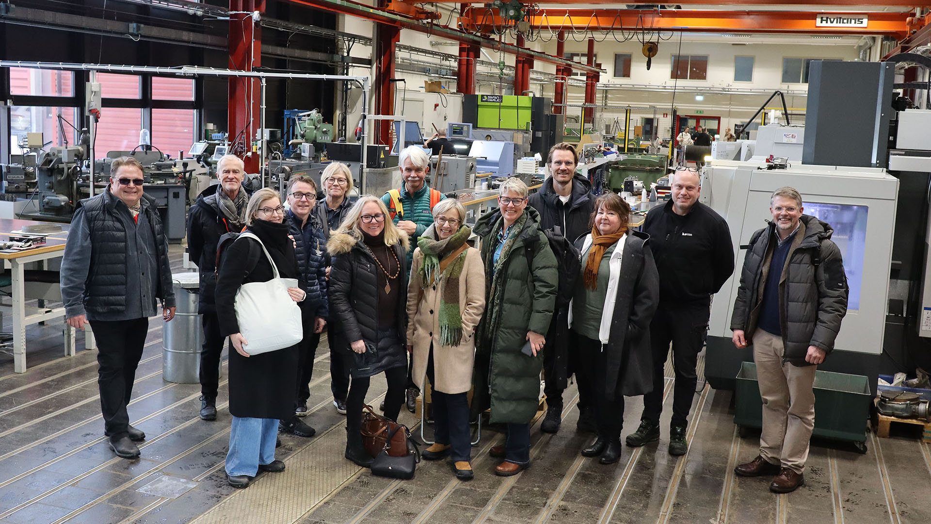 Besöket inleddes med lunch och fortsatte med en rundvandring genom universitetets tekniska miljöer. Under ledning av verkstadschef Jonas Wallinder fick deltagarna en inblick i de prototypverkstäder och specialmiljöer där nya lösningar tar form. Allt från laserskärning, vattenskärning och CNC-styrd femaxlig fräs till 3D-skrivare, vakuumformning av plast och avancerad kantpress.